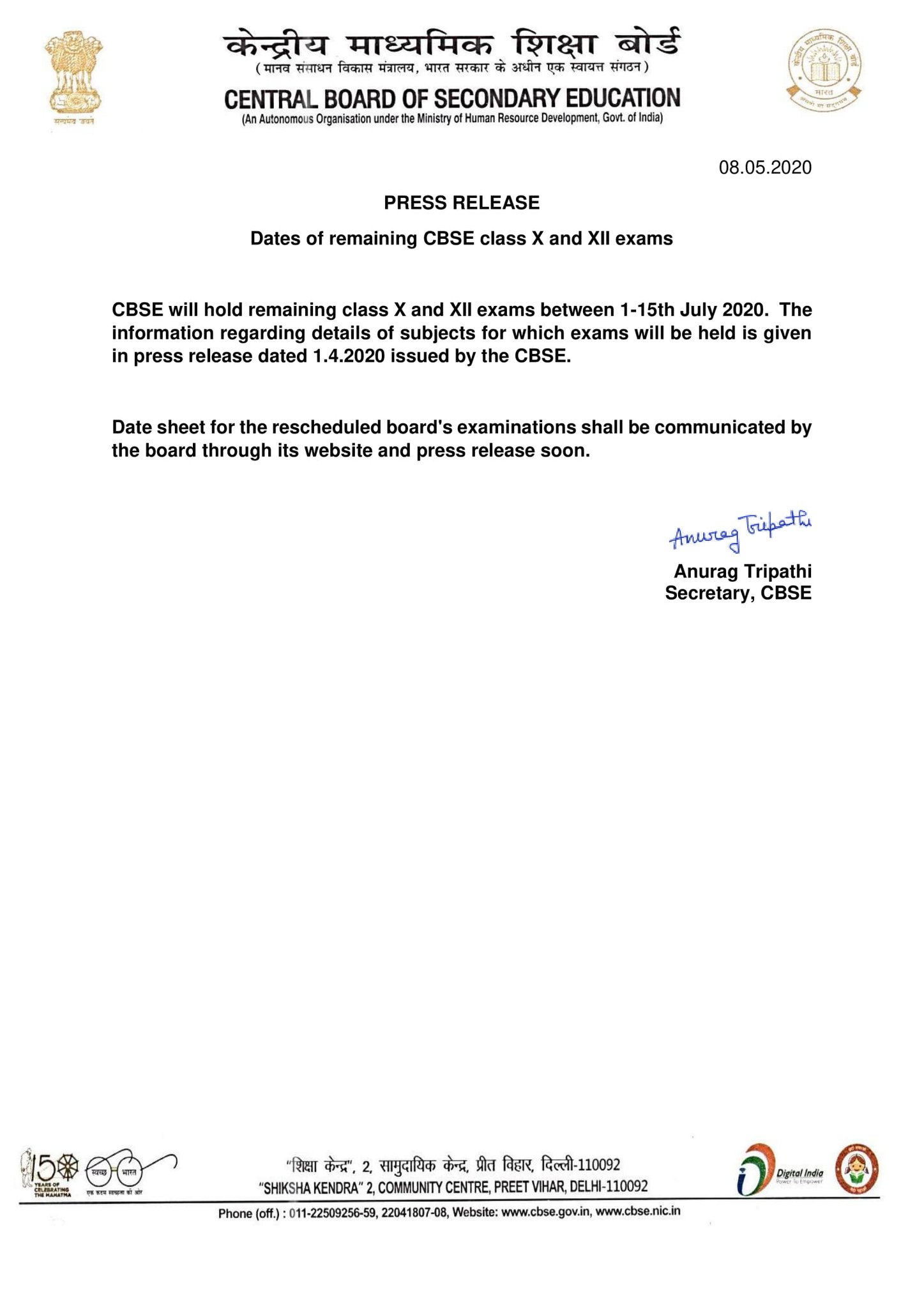 cbse official website 2020