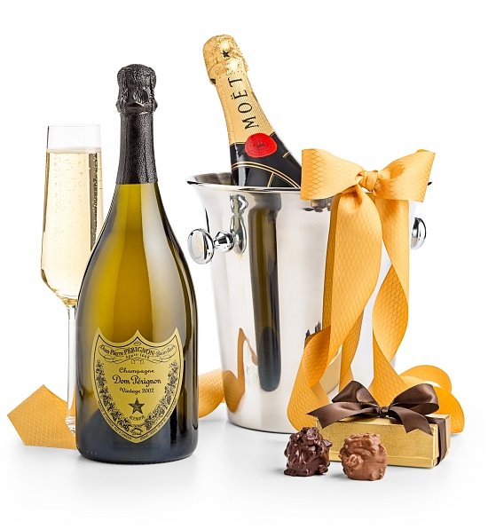 champagne and chocolate gift