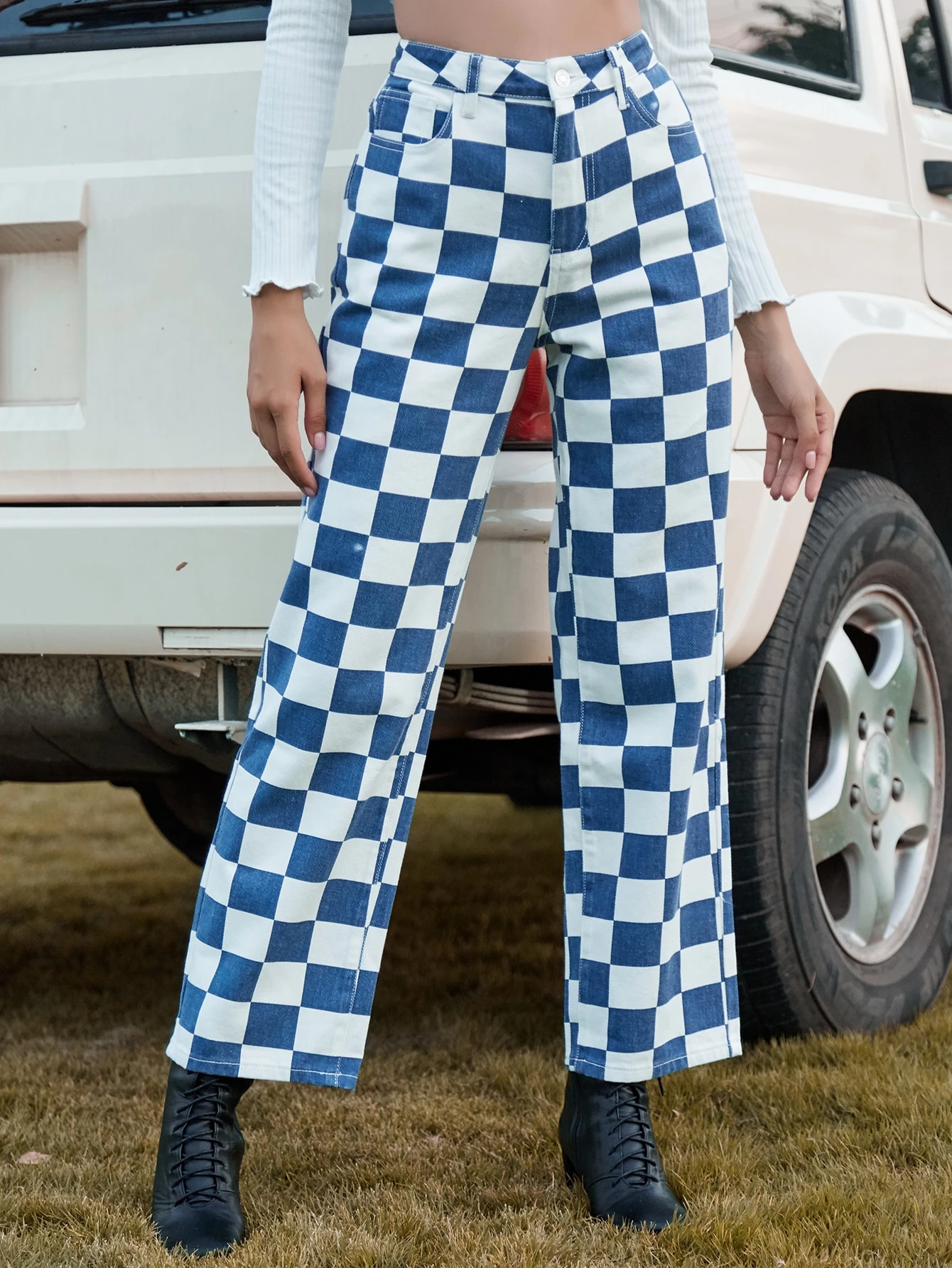 checkered jeans