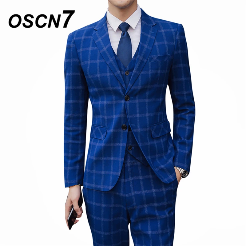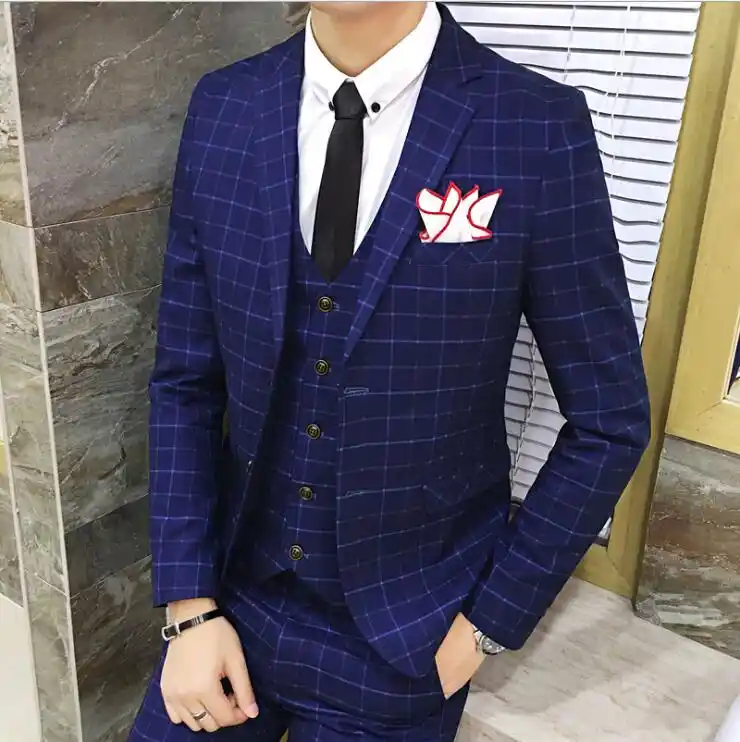 checks suit for men