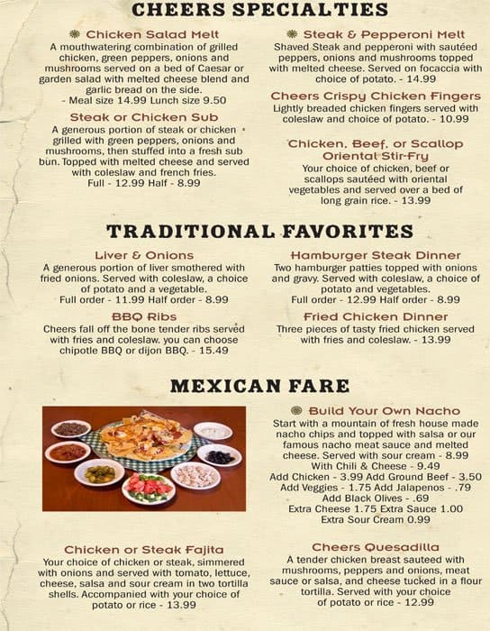 cheers menu
