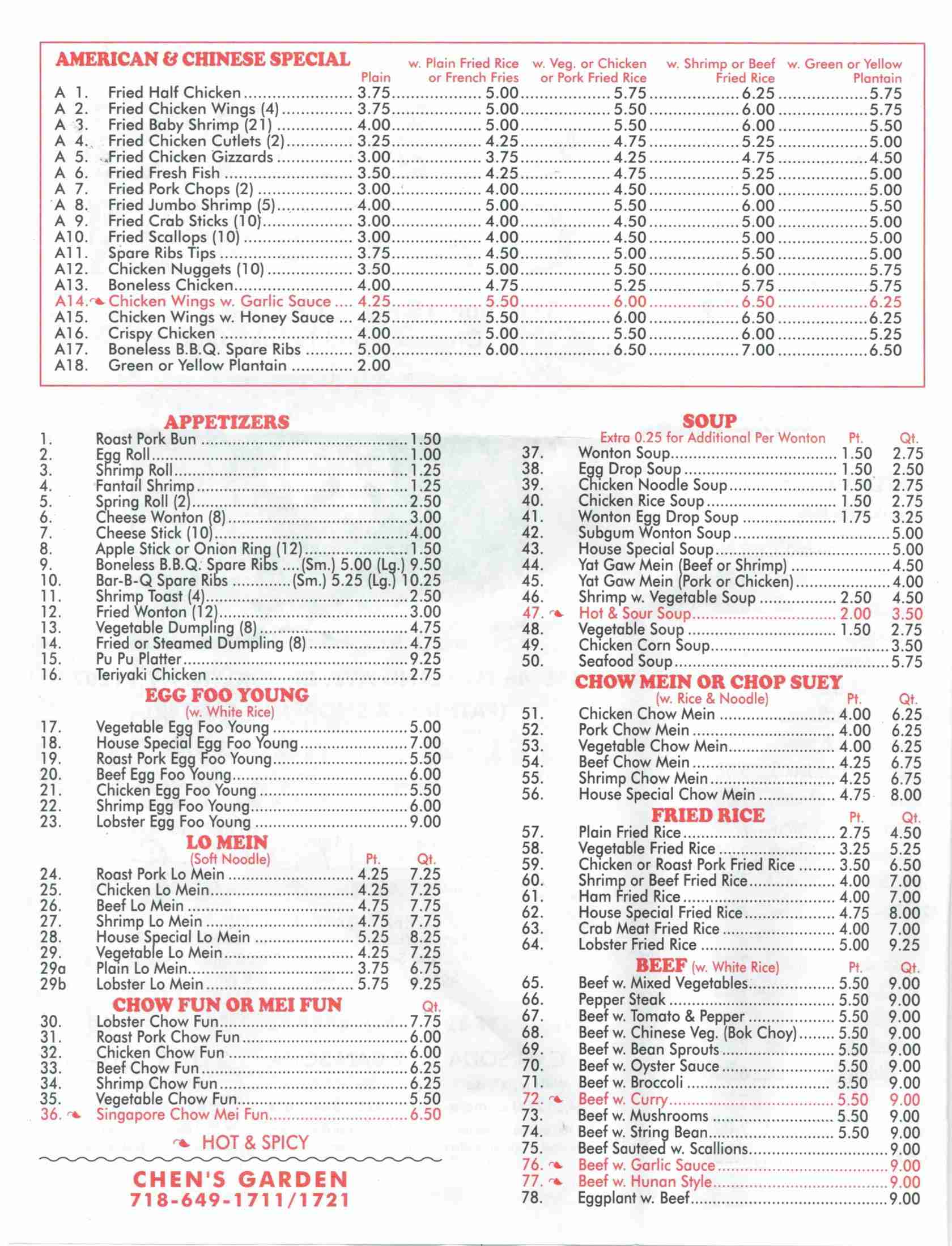 chen's garden menu