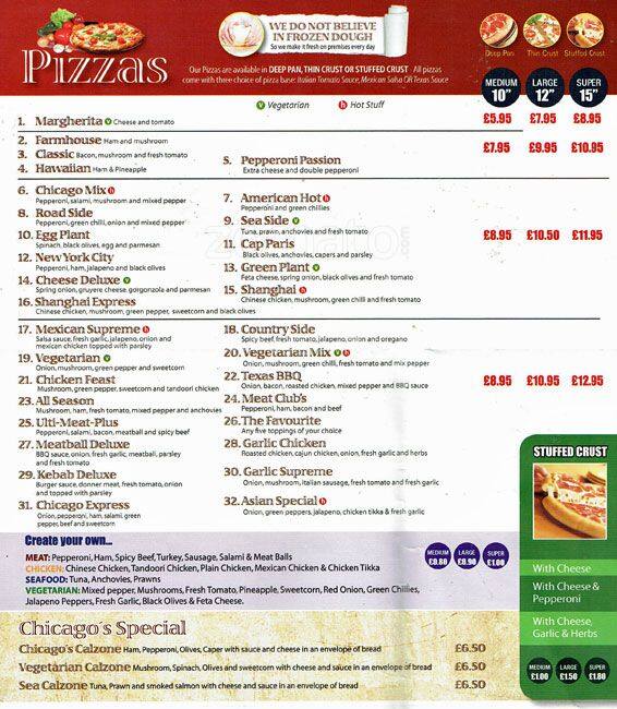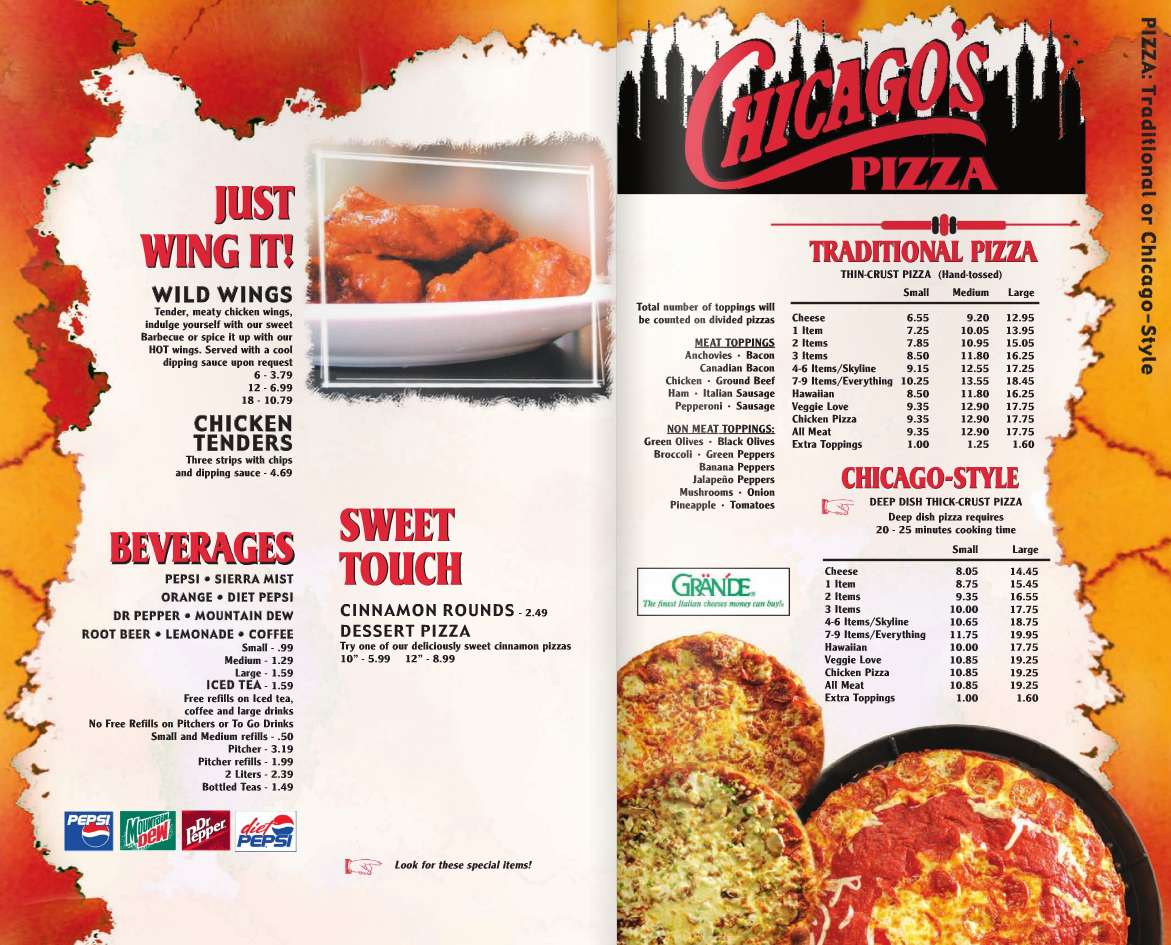 chicago's pizza menu