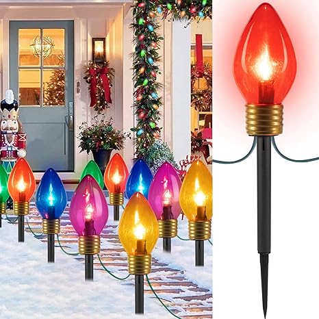 christmas lights on stakes