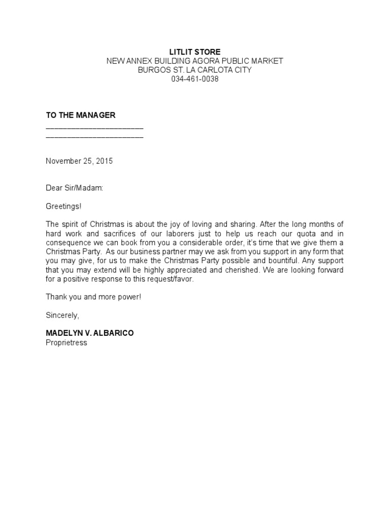 christmas party solicitation letter
