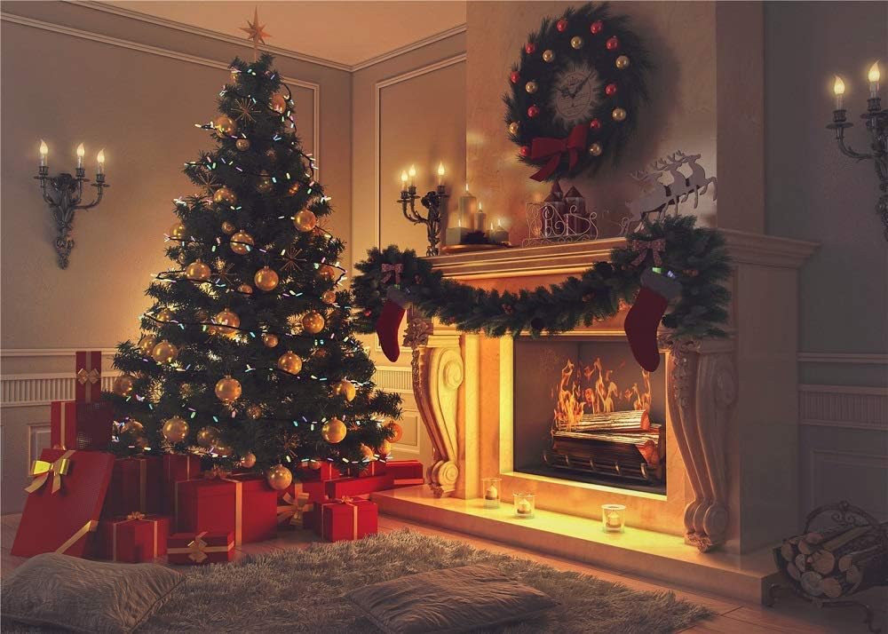 christmas tree by the fireplace