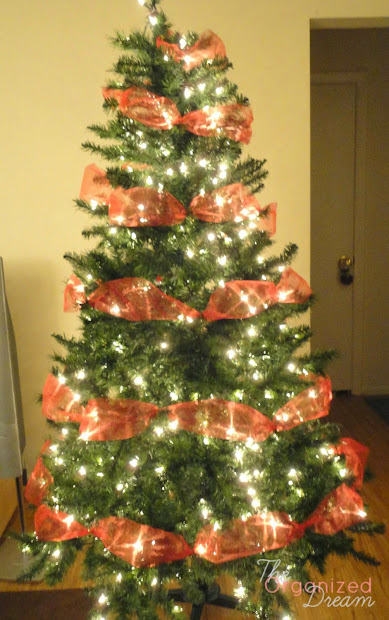 christmas tree with mesh ribbon