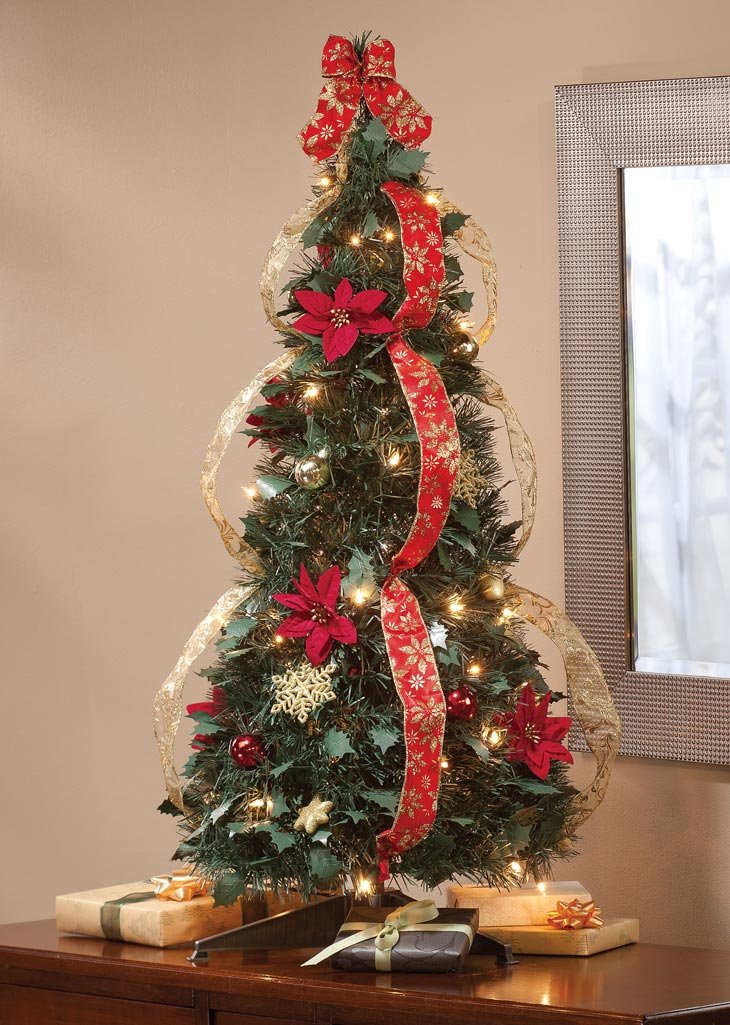 christmas tree with poinsettia