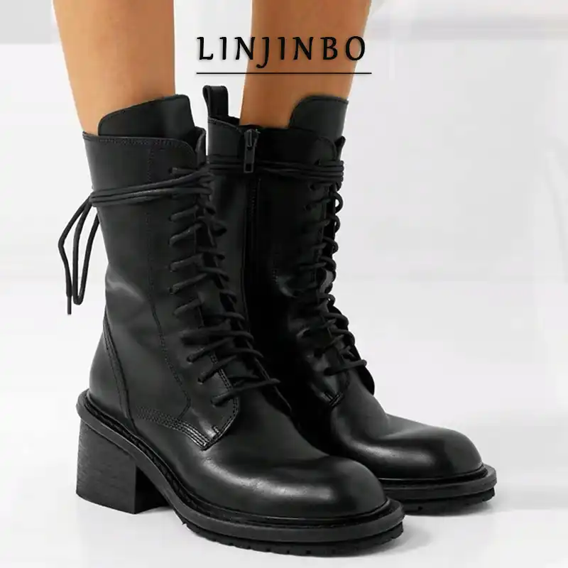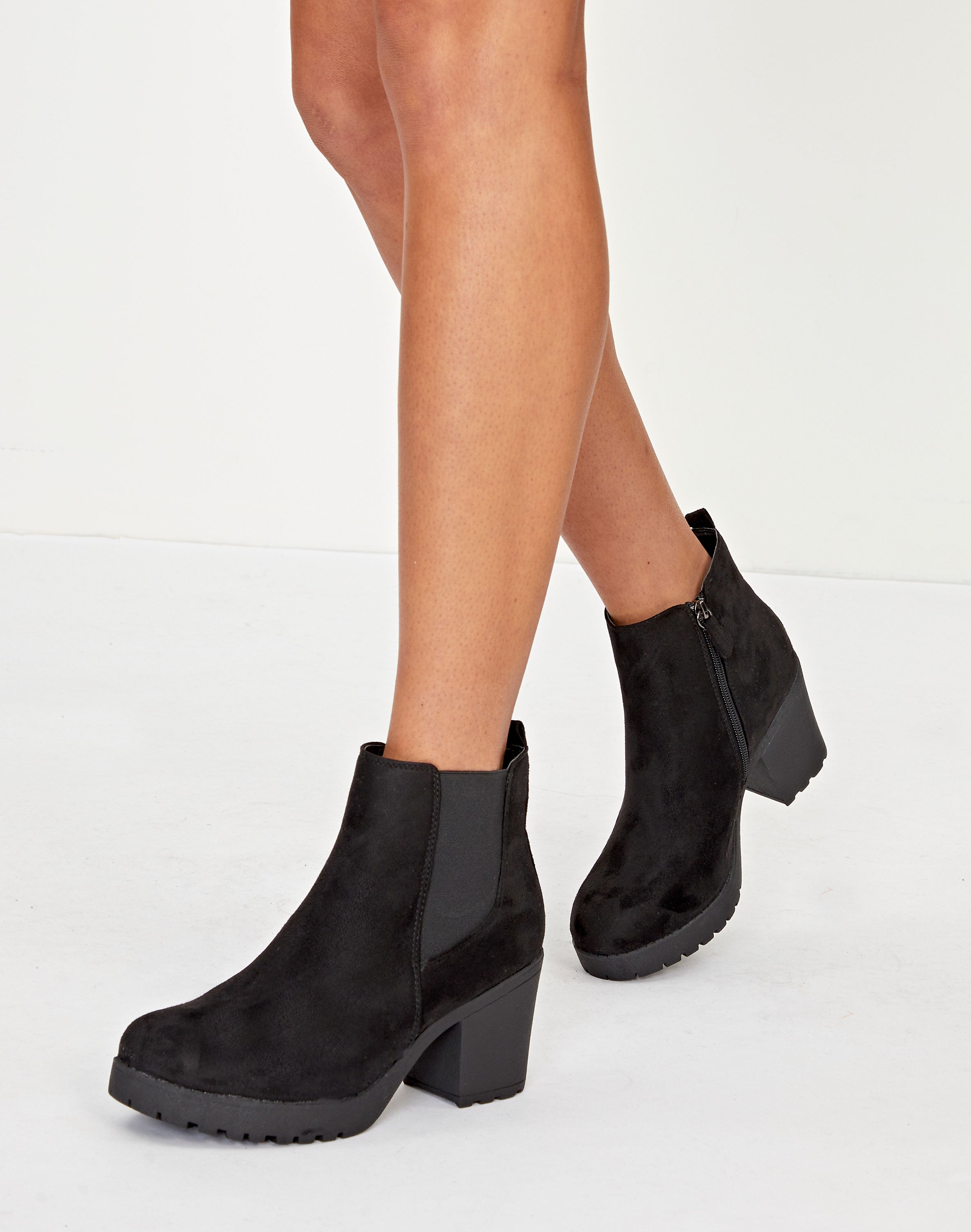 chunky black heeled boots