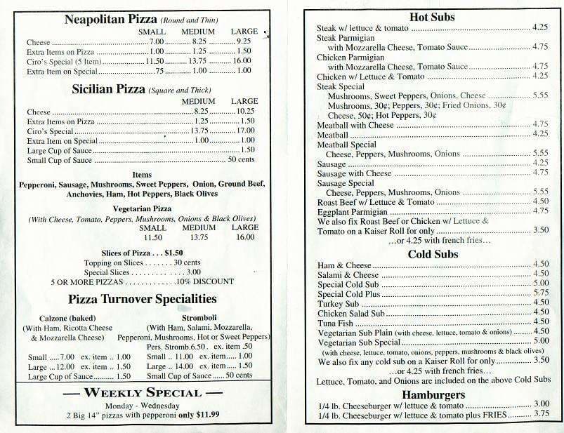 ciro's menu