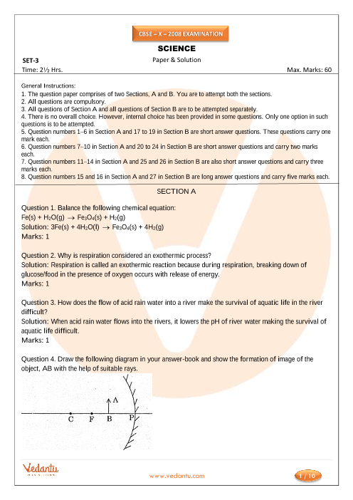 class 10 science previous year question paper