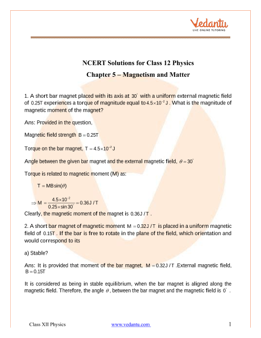 class 12 magnetism and matter