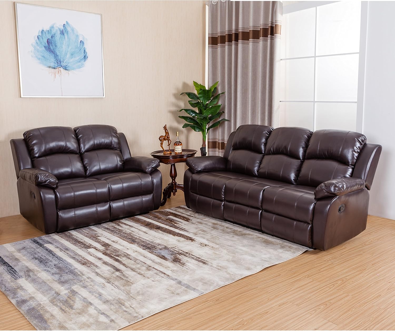 classic 2 seat bonded leather double recliner loveseat
