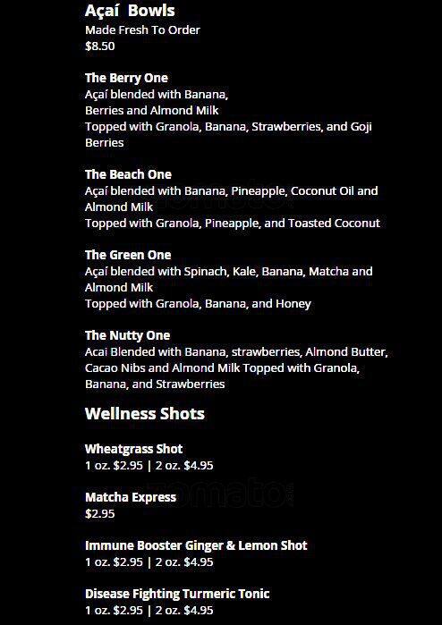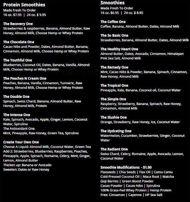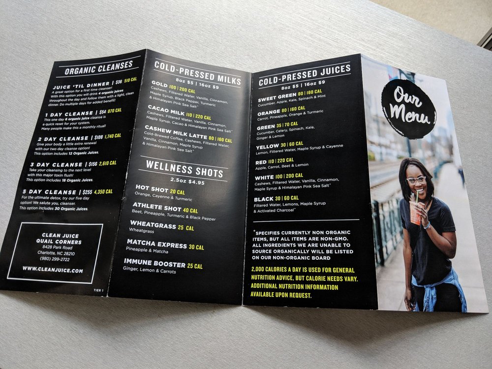 clean juice menu