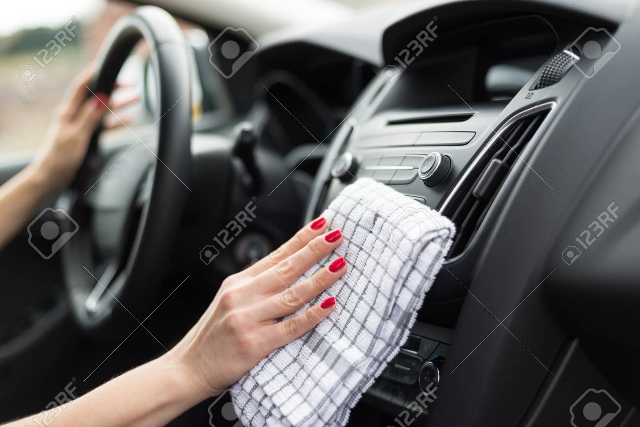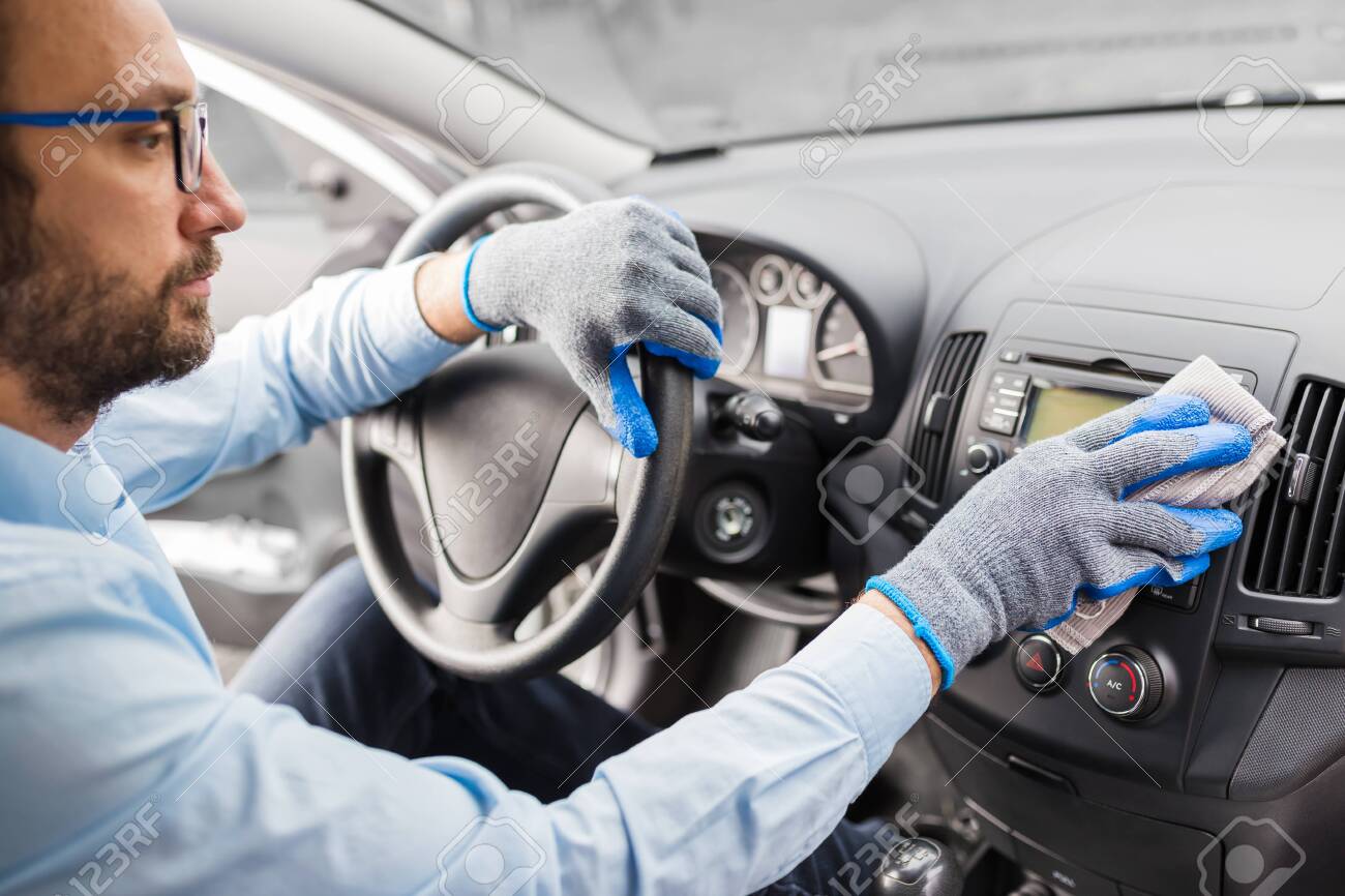 cleaning car dashboard