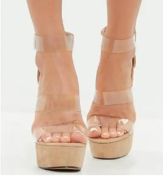 clear strap wedges