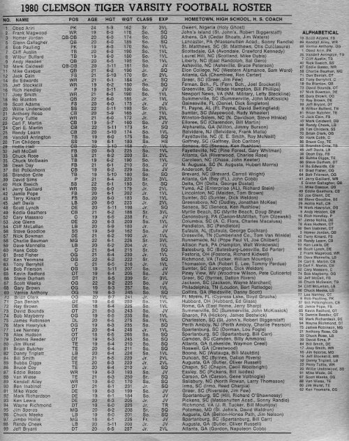 clemson tigers football roster