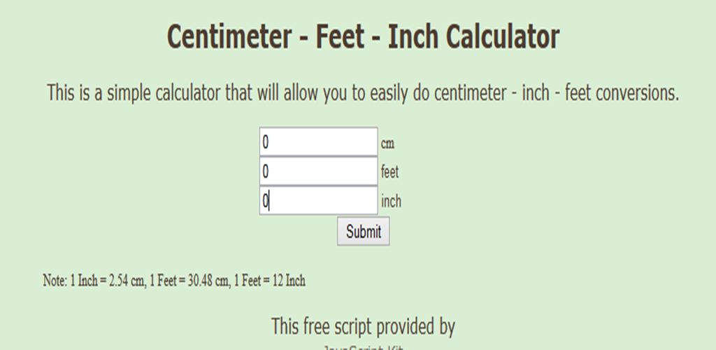 cm to in calculator