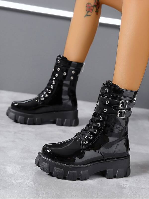 combat boots patent leather