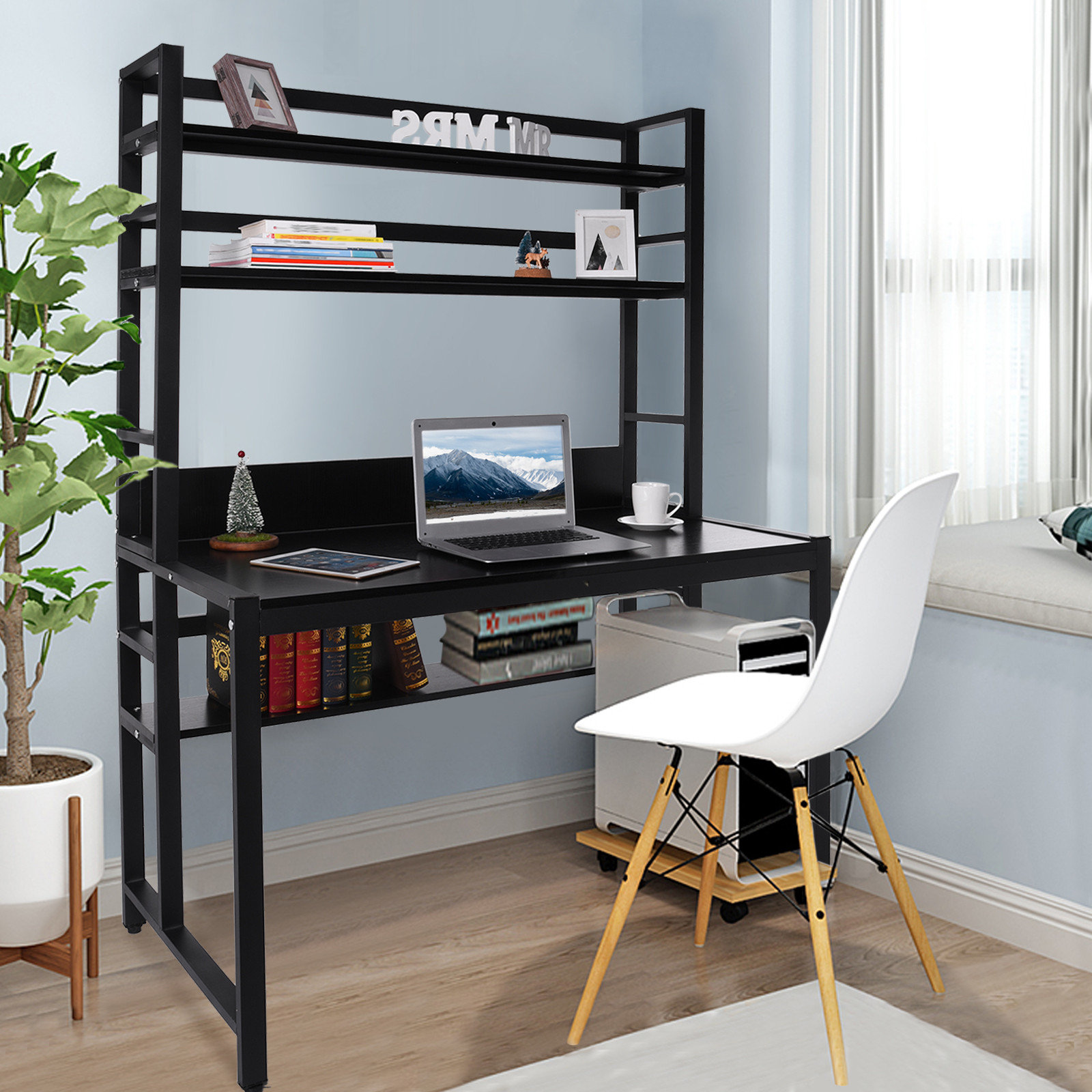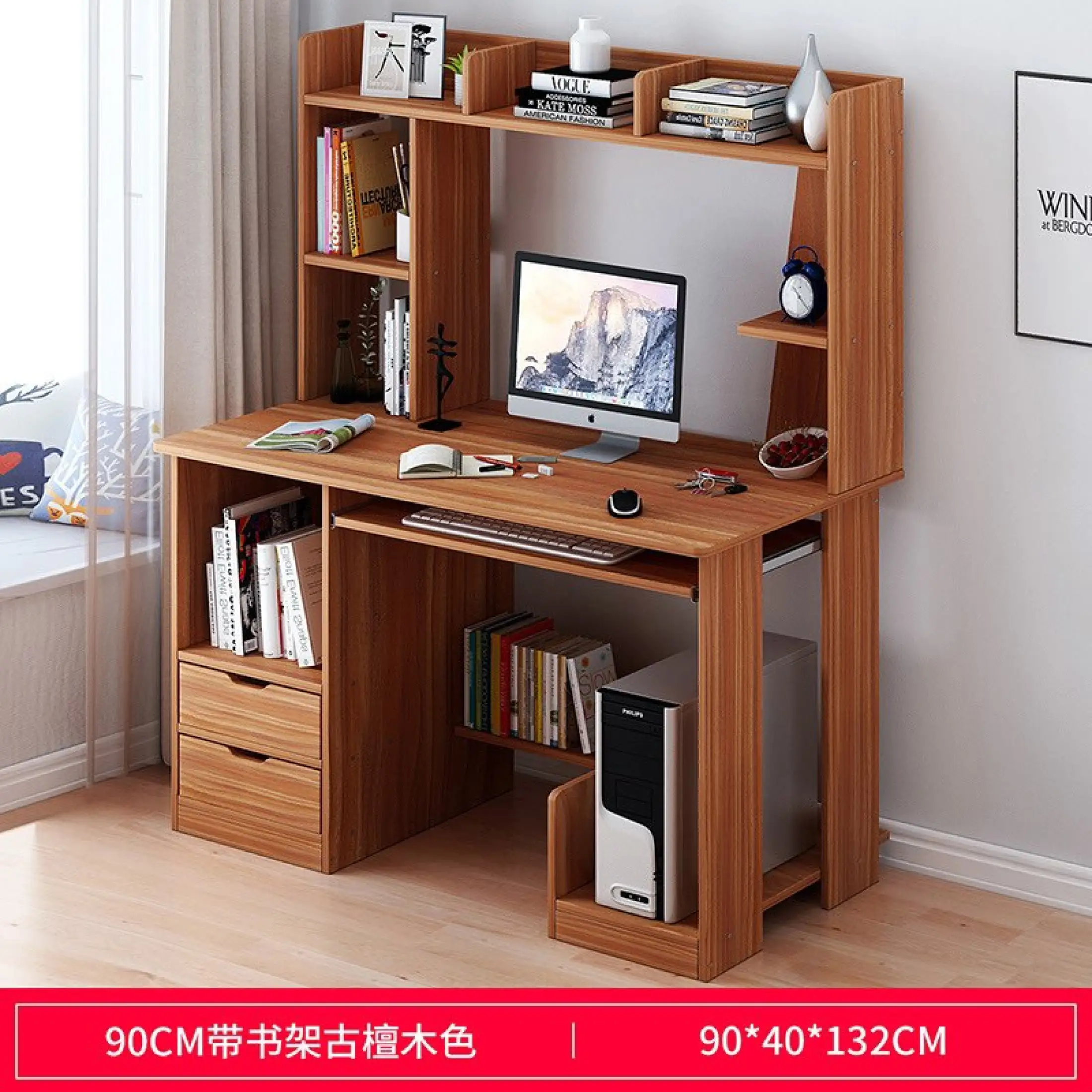 computer desk with bookshelf