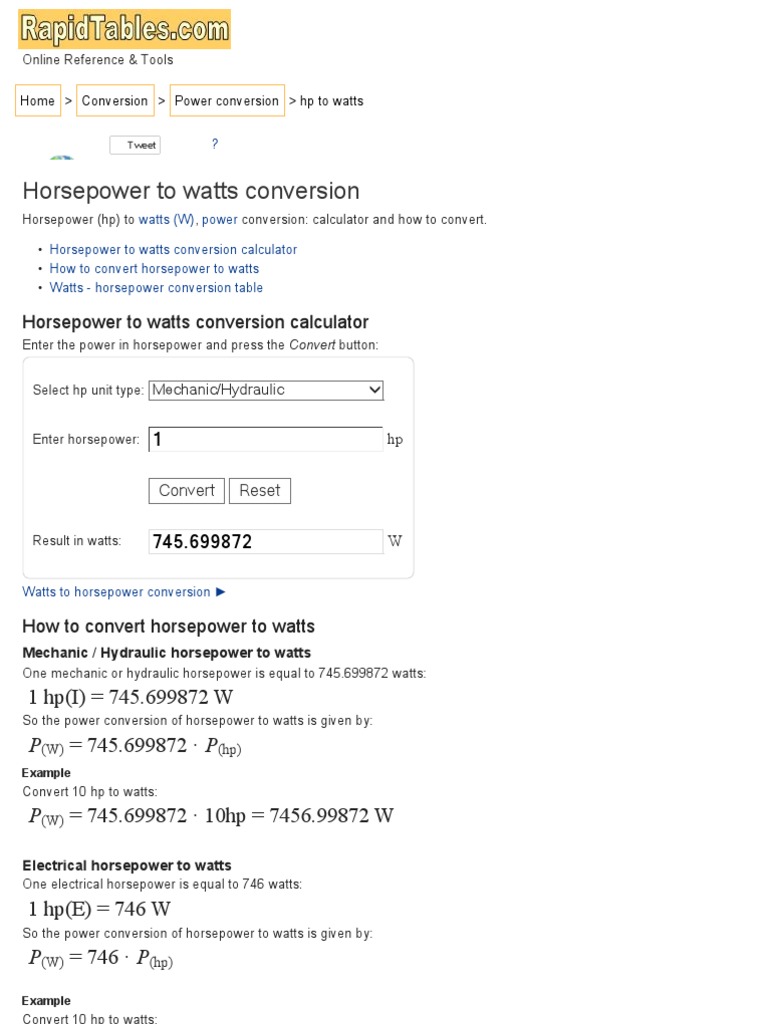 converting watts to hp