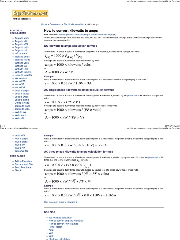 converting watts to kilowatts
