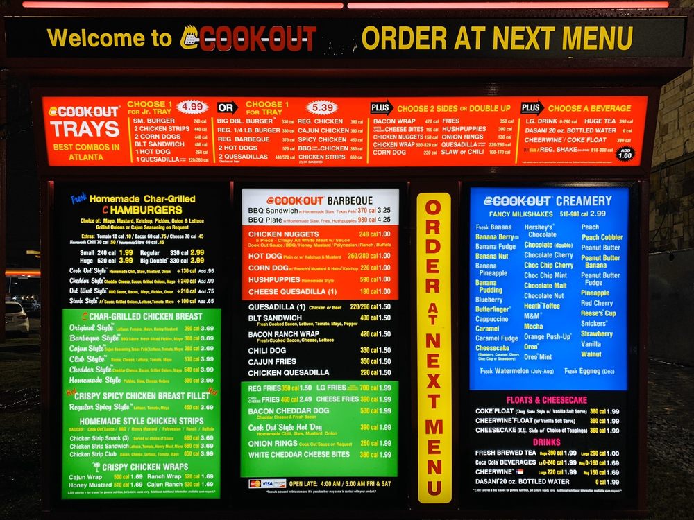 cookout menu with prices 2020