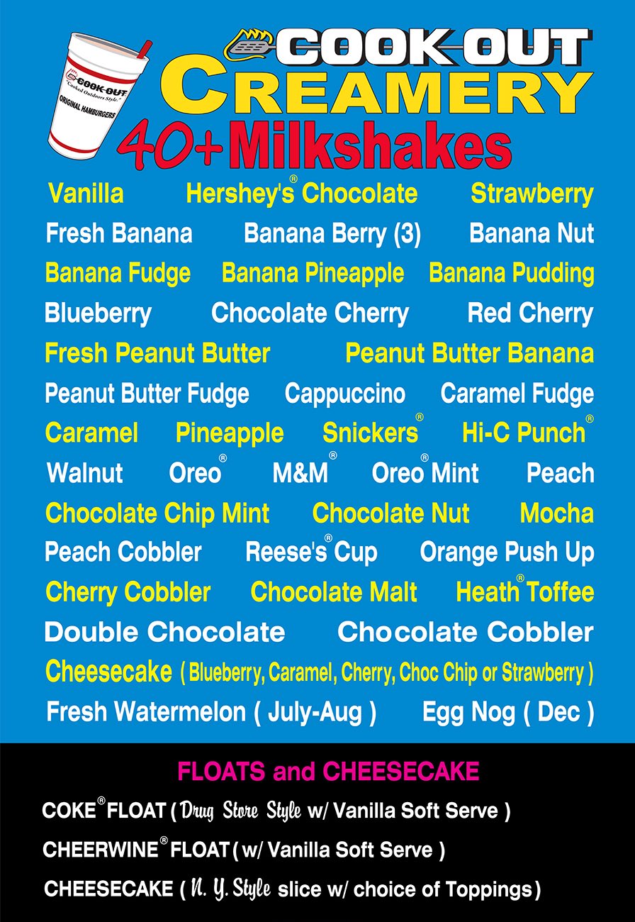 cookout milkshake price