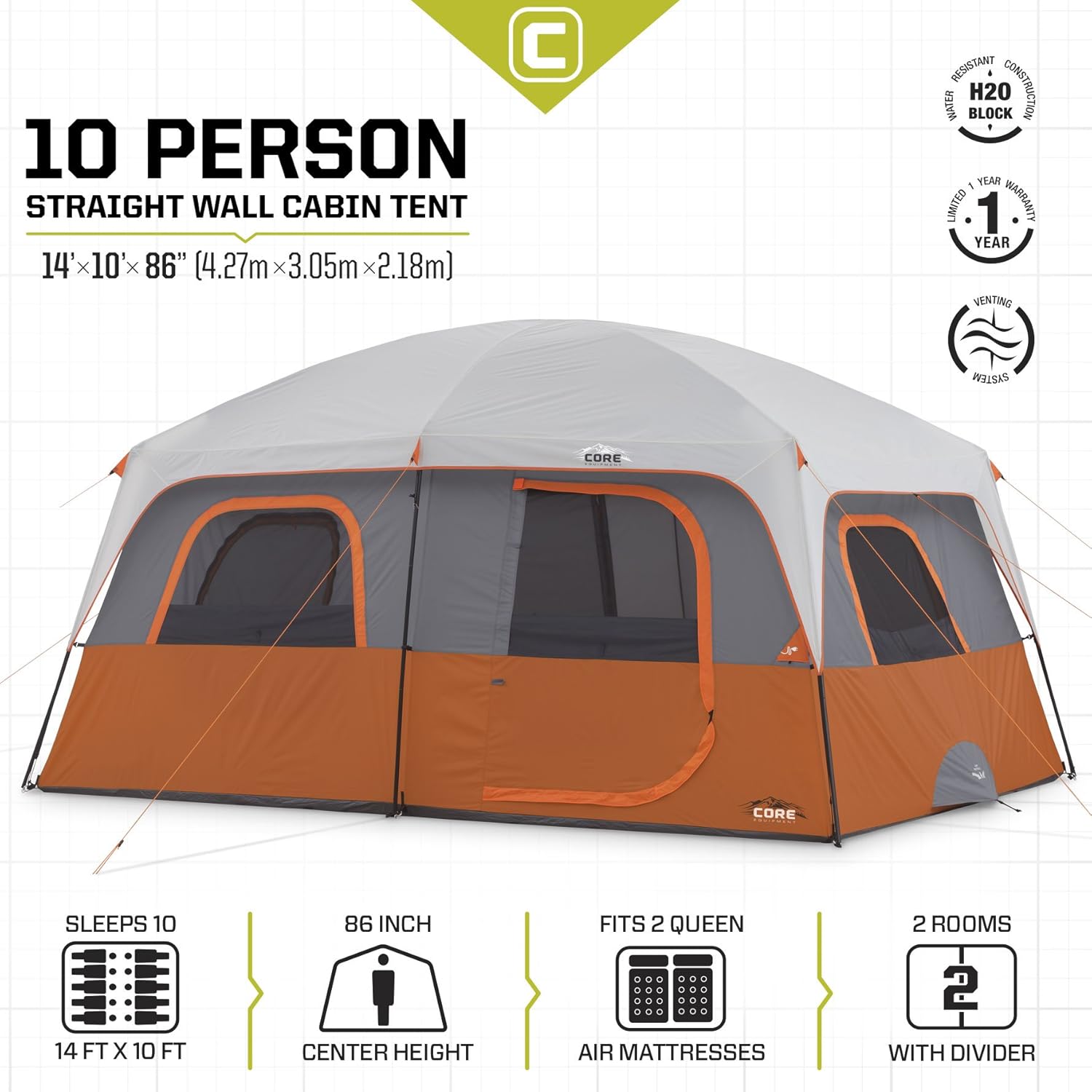 core 6 person straight wall cabin tent