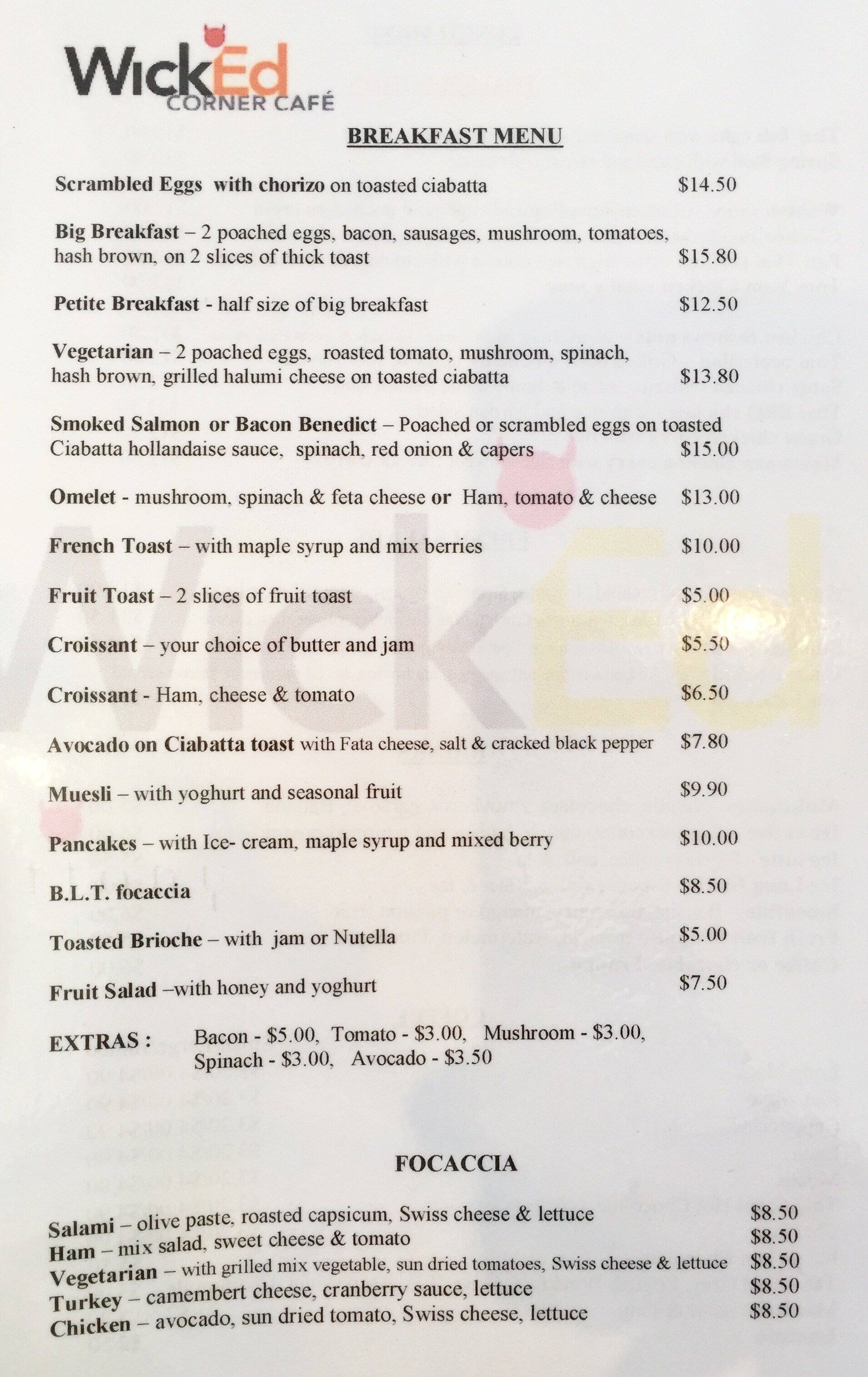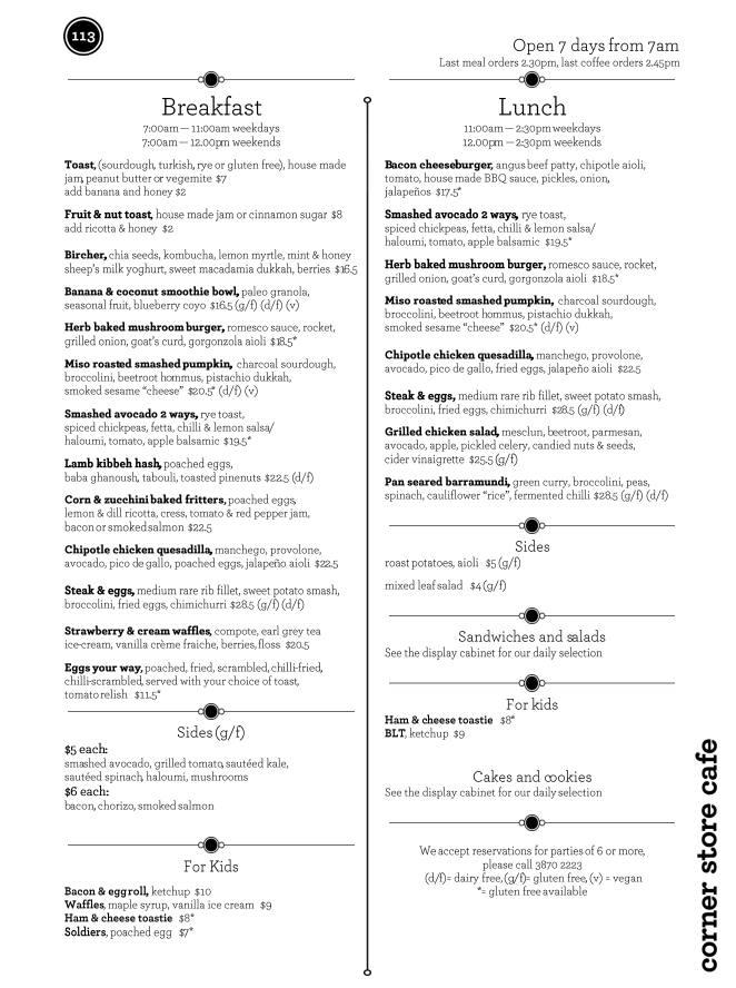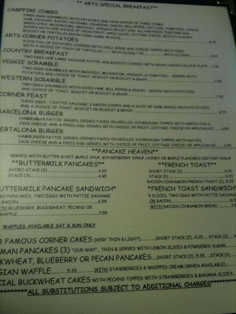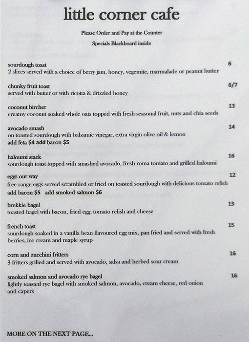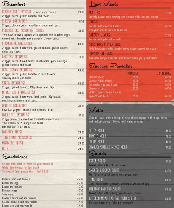 corner cafe menu