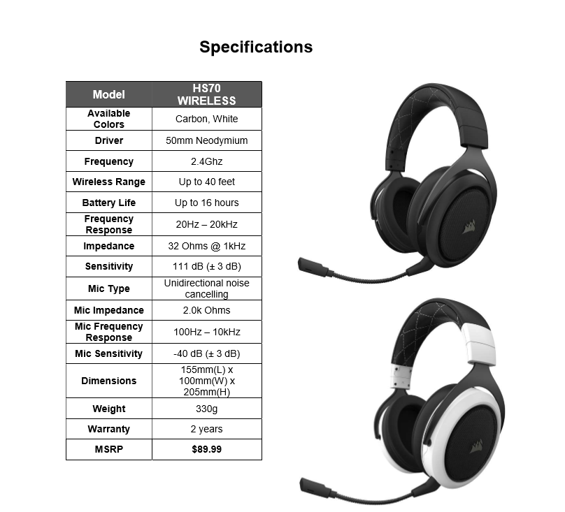 corsair hs70 wireless gaming headset