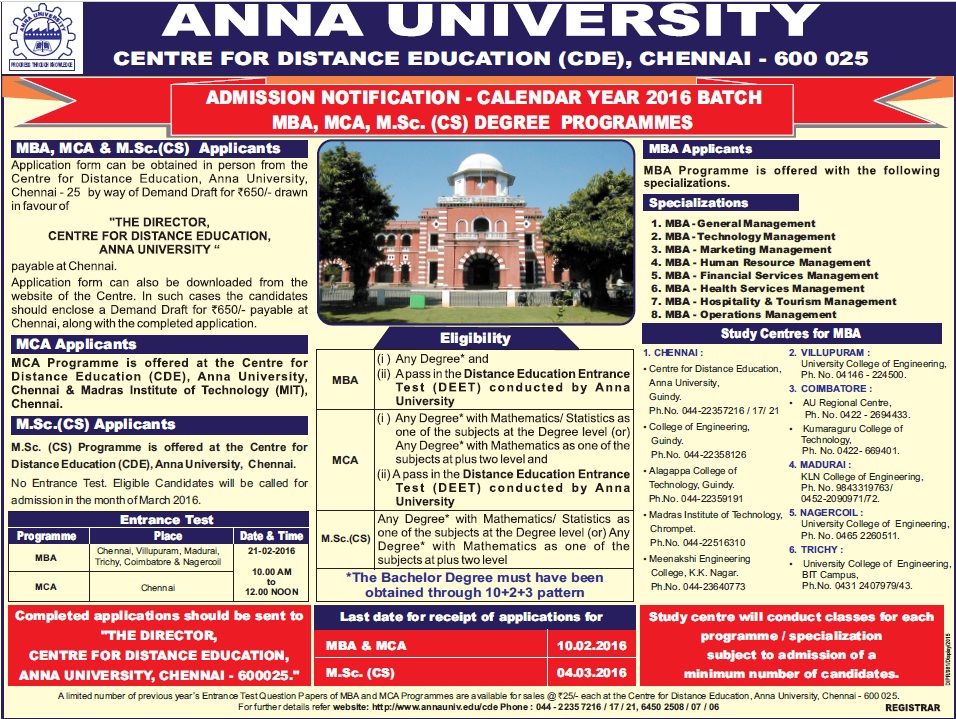 courses in anna university