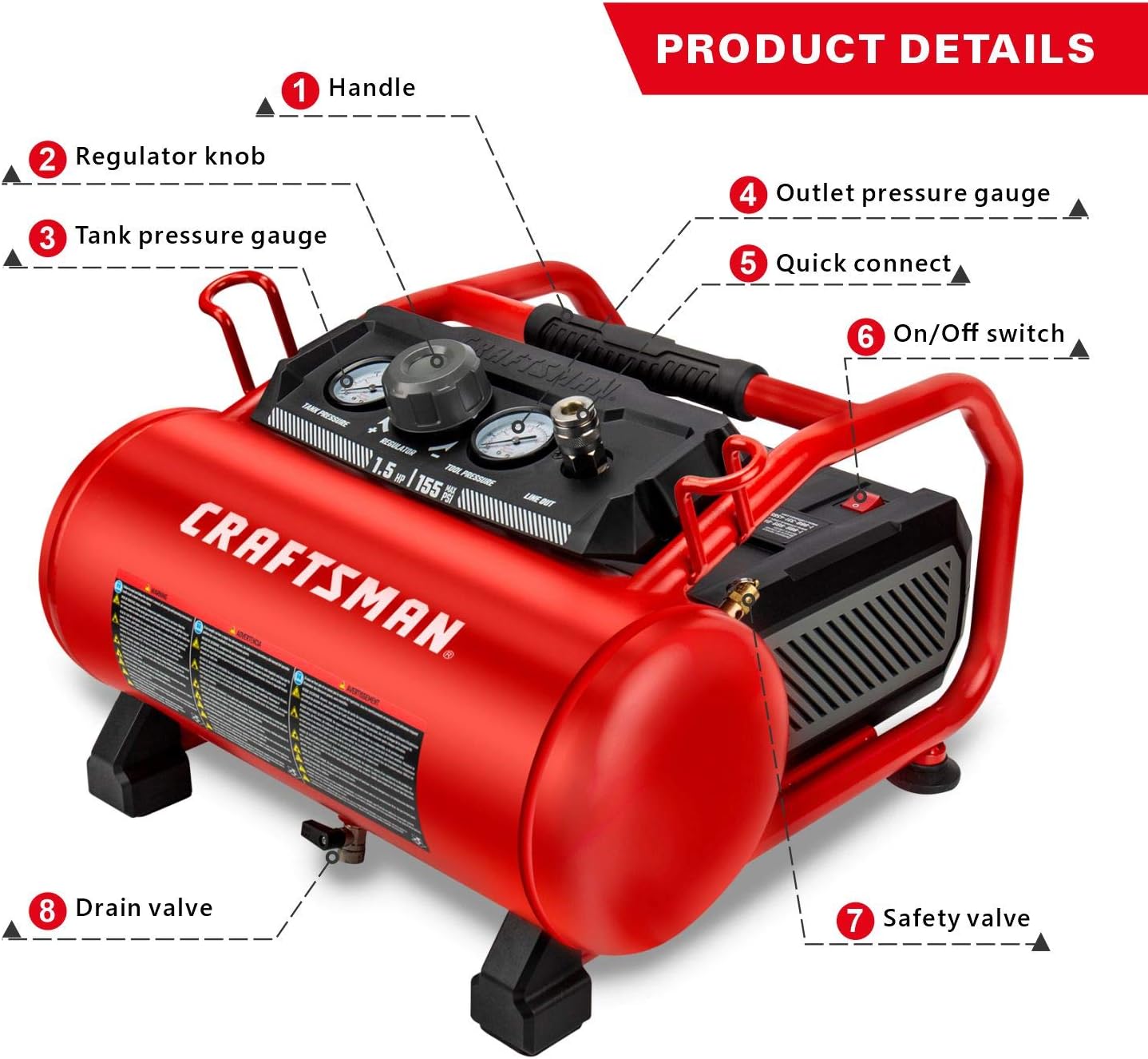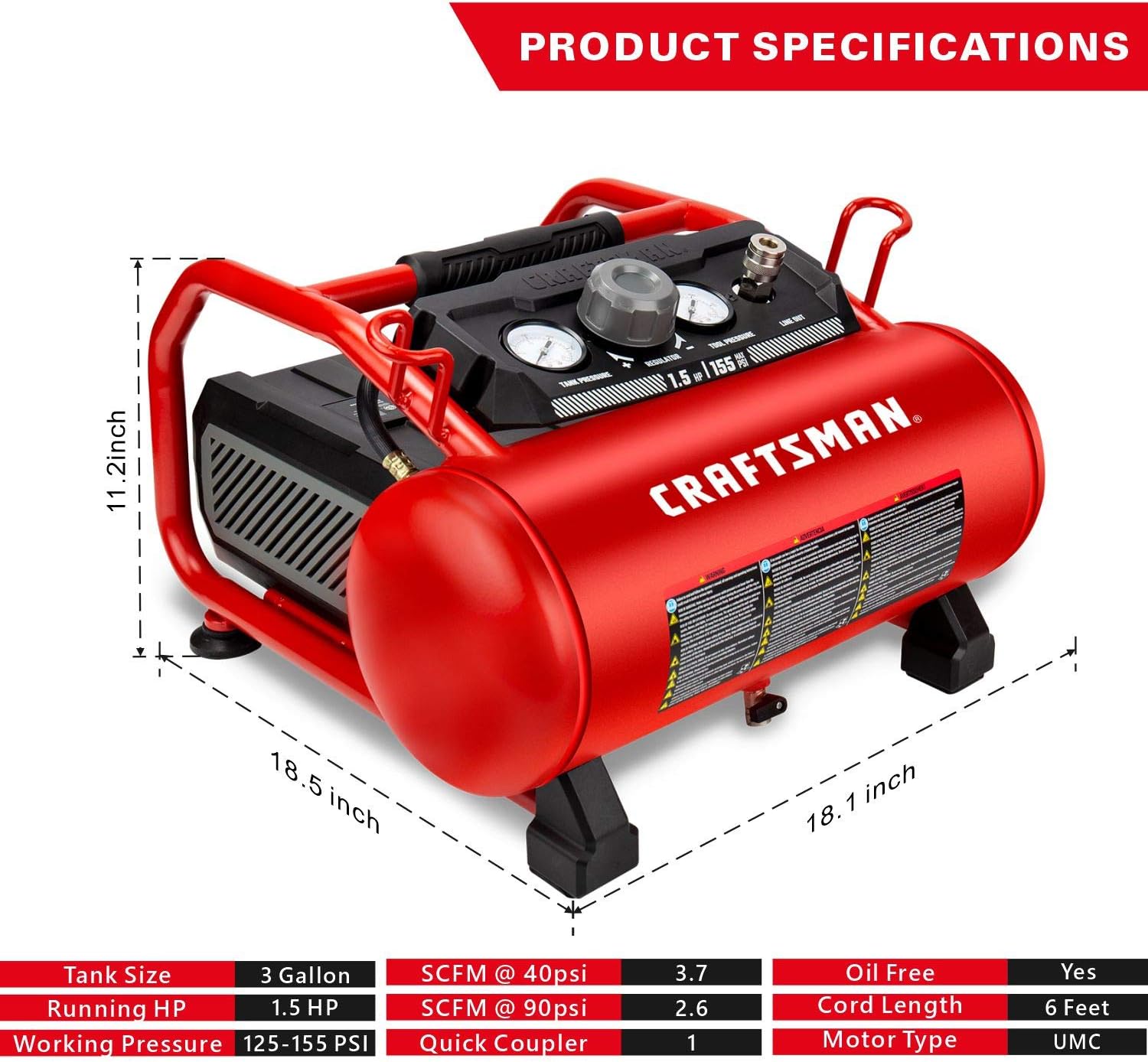 craftsman 3 gallon air compressor 125 psi