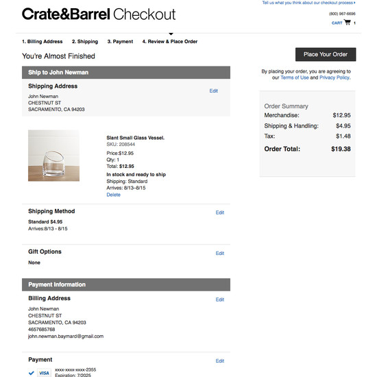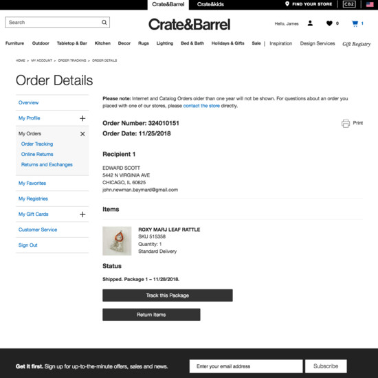 crate and barrel order status