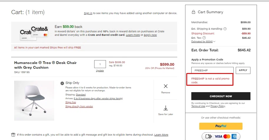 crate and barrel promo