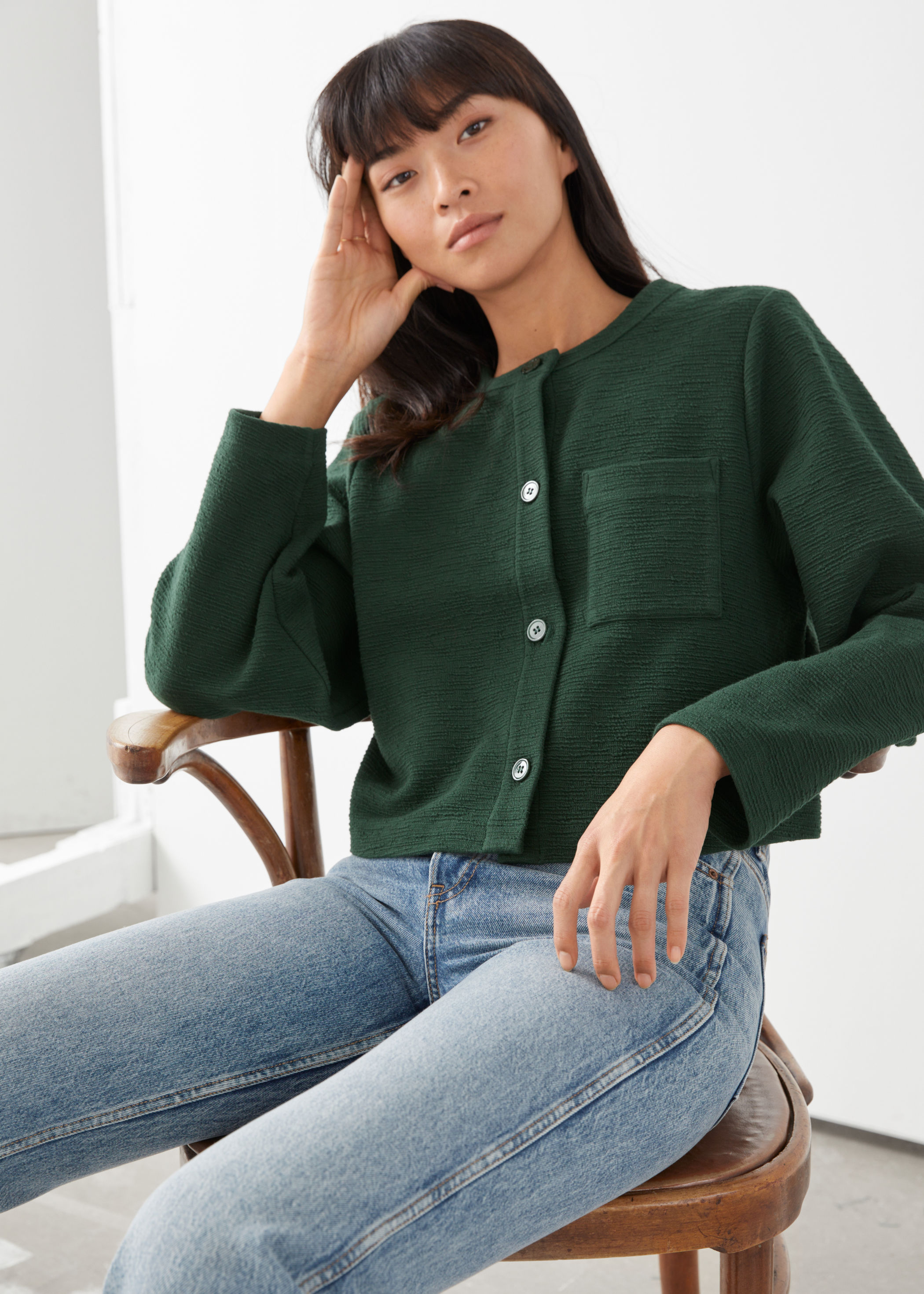 cropped button up cardigan
