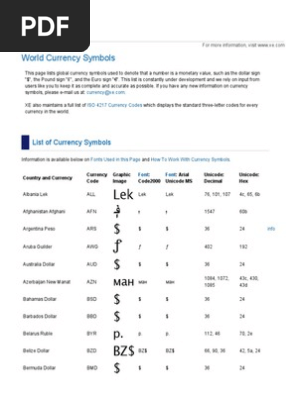 currency symbols list