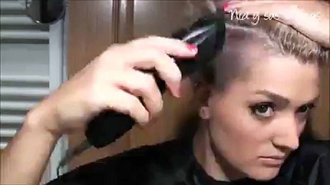 cutting women's hair with clippers