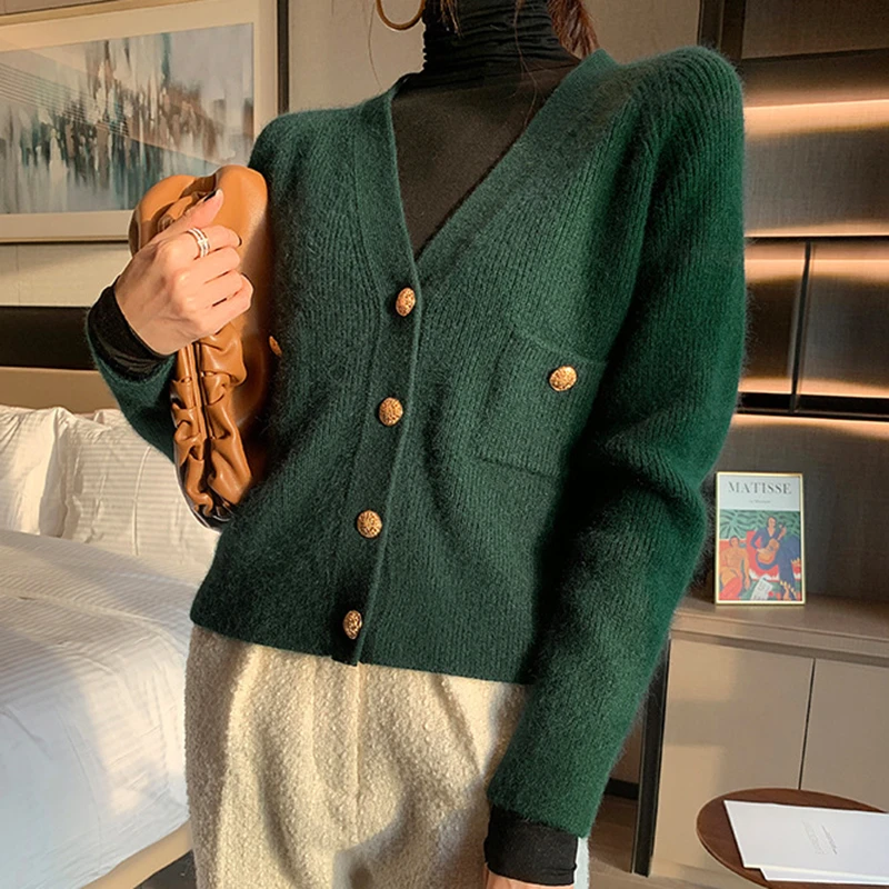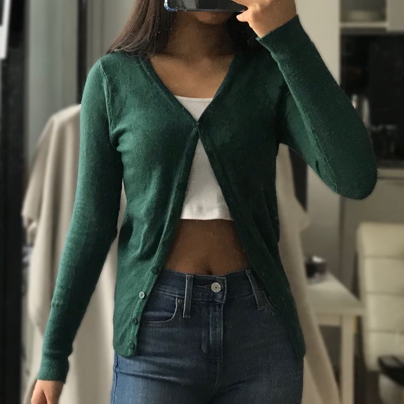 dark green cardigan