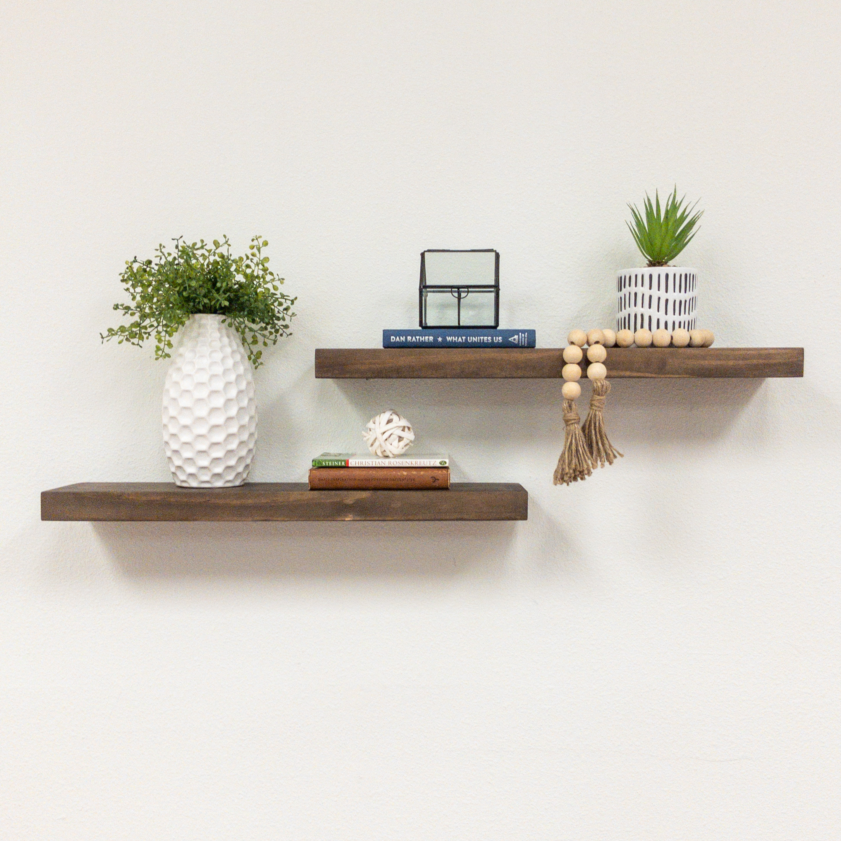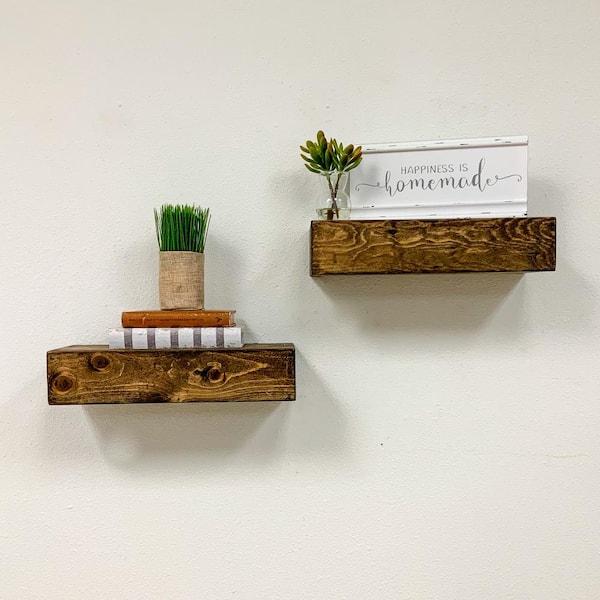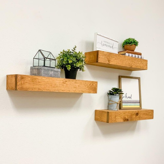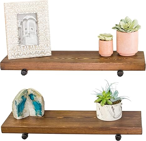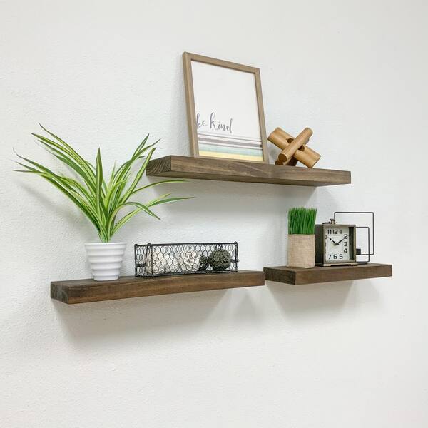 dark wood floating shelves