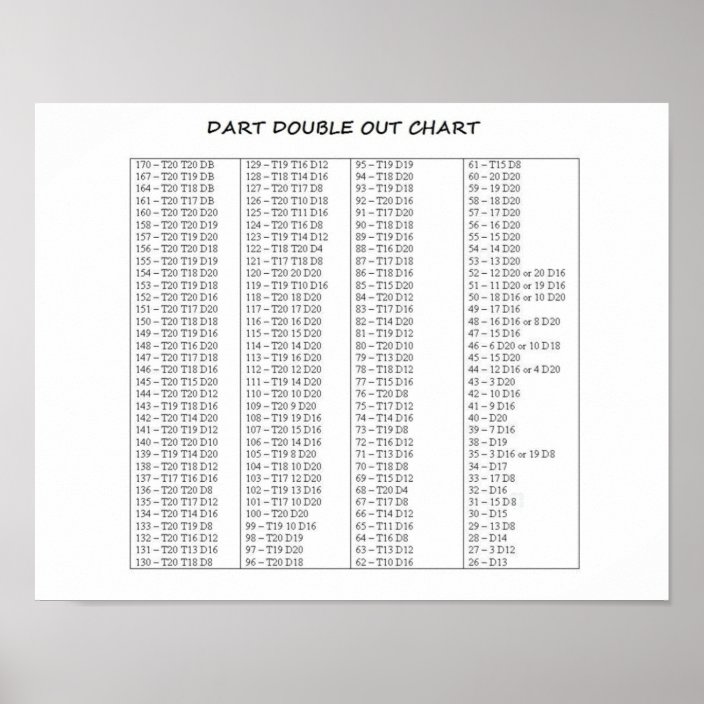 darts out chart