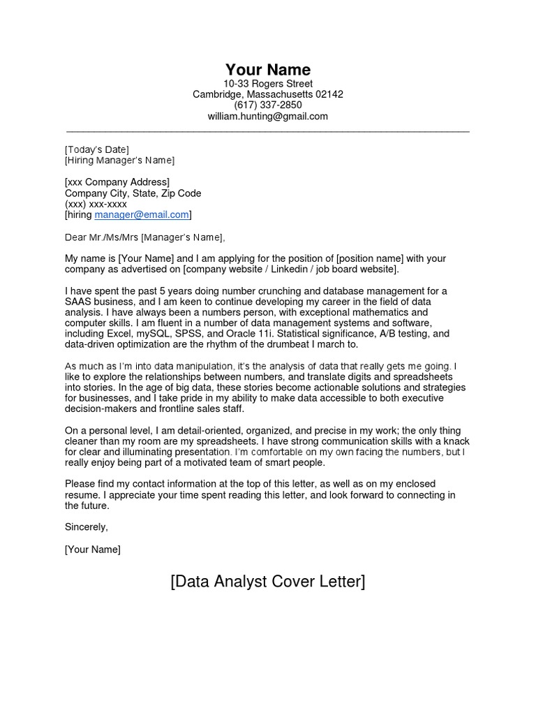 data analyst cover letter