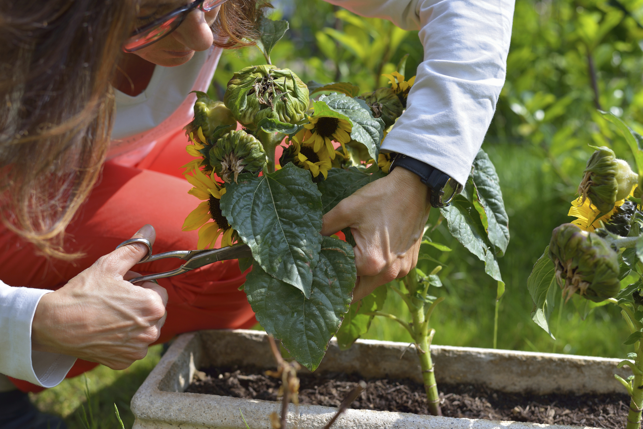 deadheading sunflowers