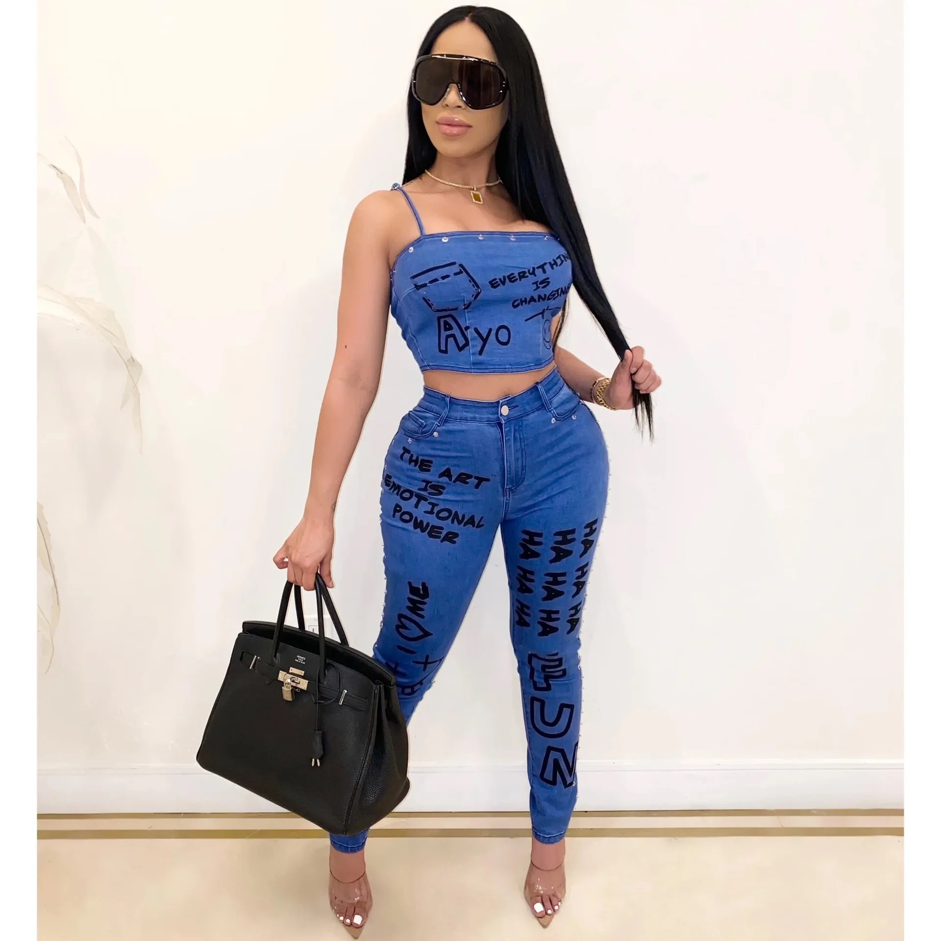 denim two piece set