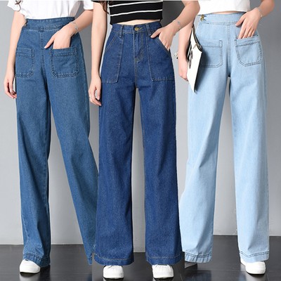 denim wide leg pants