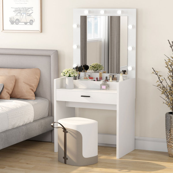 desk with lighted mirror