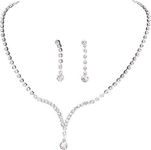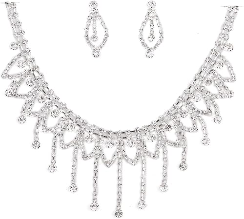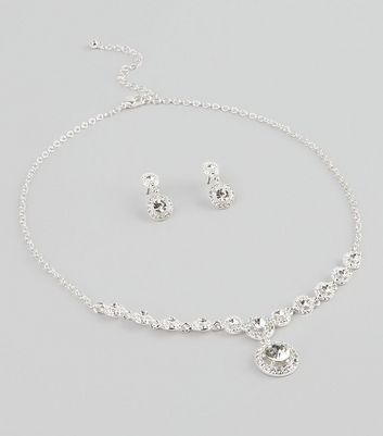diamante necklace and earrings set
