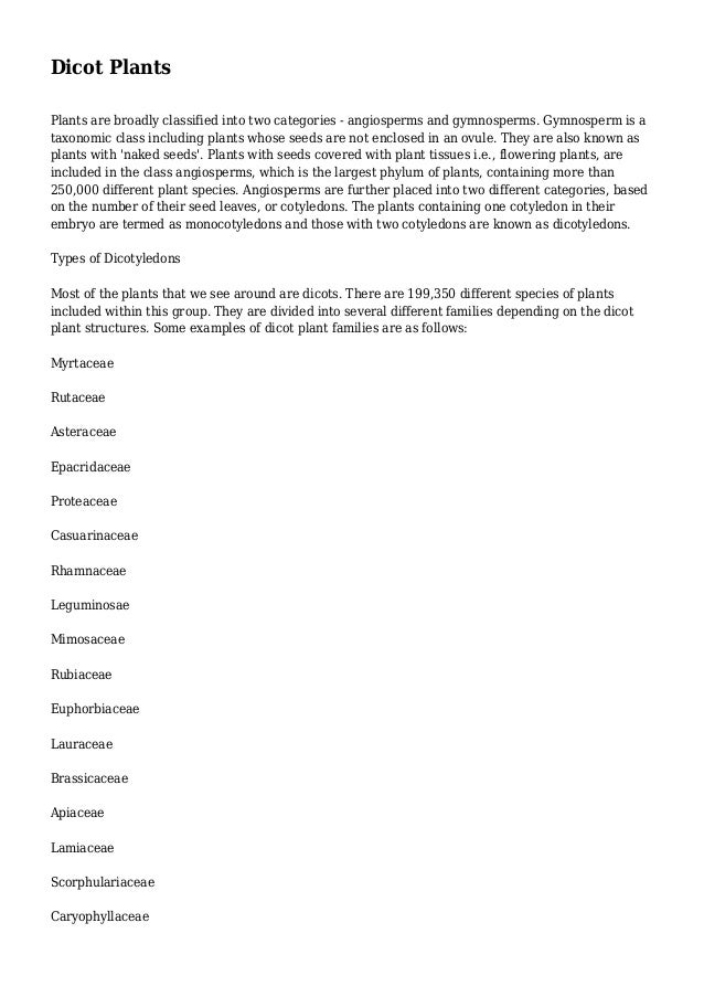 dicot plants examples