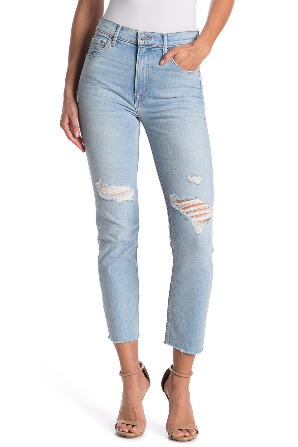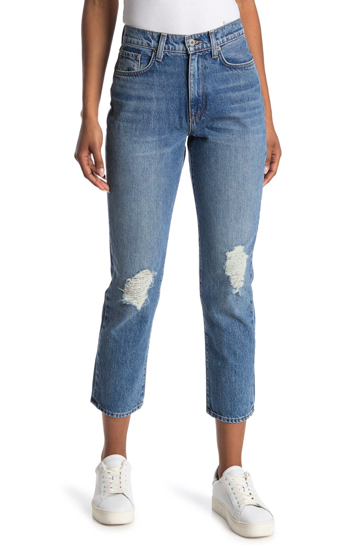 distressed straight leg jeans