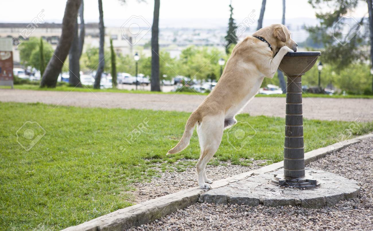 dog drinking fountain